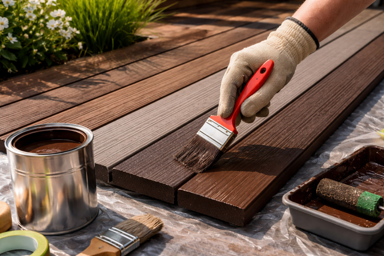 Важно понимать: покраска — это временная мера. Краска на ДПК держится значительно хуже, чем на натуральном дереве, и её придётся обновлять каждые 1–2 года. Если доска потеряла вид из-за некачественного покрытия, правильнее заменить её на новую, чем красить снова и снова.