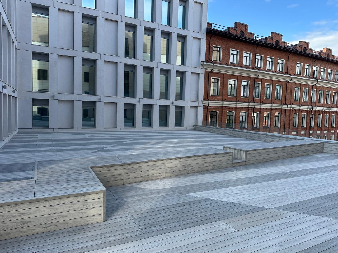 Для коммерческих объектов с высокой проходимостью — ресторанные террасы, набережные, общественные пространства — используют усиленные серии ДПК с толщиной от 30 мм и шагом лаг 300 мм. Такие конструкции выдерживают нагрузки свыше 700 кг/м².